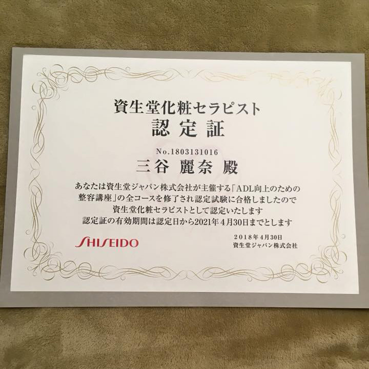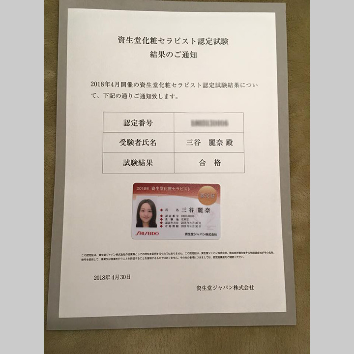 先月受けた資生堂化粧療法士の結果が本日送られてきました。
