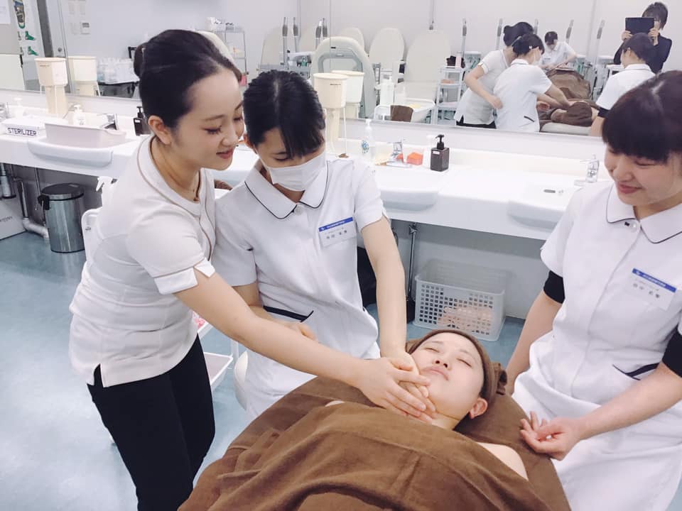 エステの楽しさを伝え、就職後も使える技術を生徒の皆さんに伝えられたらと思い、教師目線と現役エステティシャン目線を入れた授業を心がけて行いました。