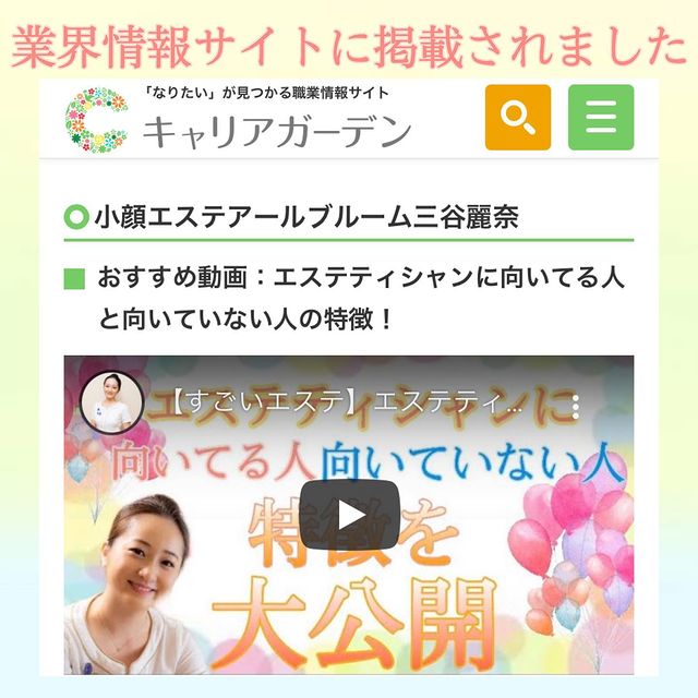 なりたいが見つかる職業情報サイトにて、エステ業界のおすすめ動画として掲載されました。