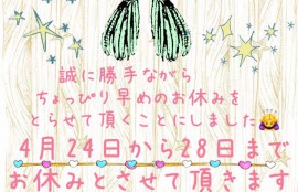 4. 【店休日のお知らせ】4月24日(水)~28日(日)