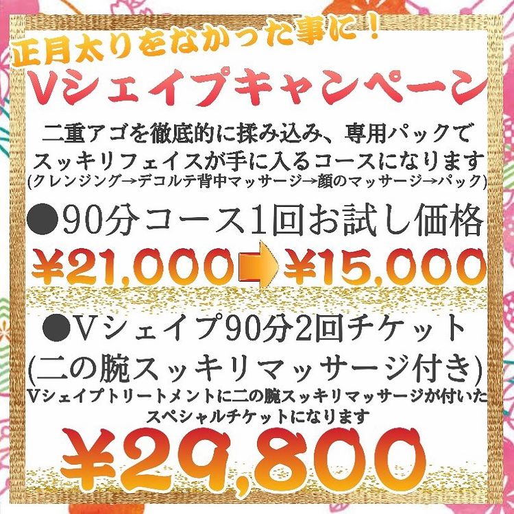 ☆Vシェイプ2回チケット90分チケット☆(二の腕スッキリマッサージ付き)