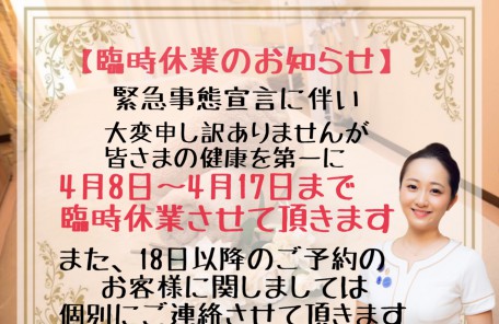 【臨時休業のお知らせ】4月8日〜4月17日まで休業とさせて頂きます。
