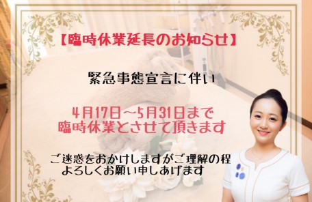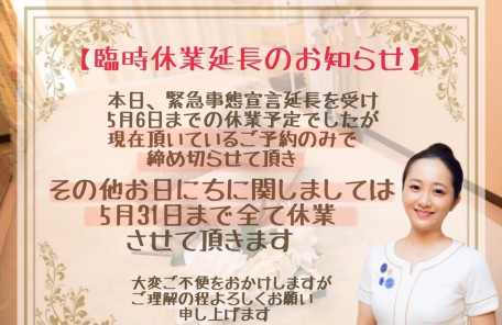 【臨時休業延長のお知らせ】5月31日まで休業とさせて頂きます。
