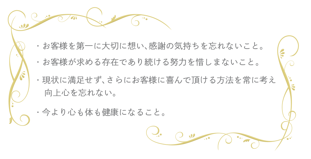 美しくなるというワクワク感を感じられる確かな施術技術と心からご満足いただけるホスピタリティ(おもてなし)をお一人でも多くの方にお届けしたいと思います。